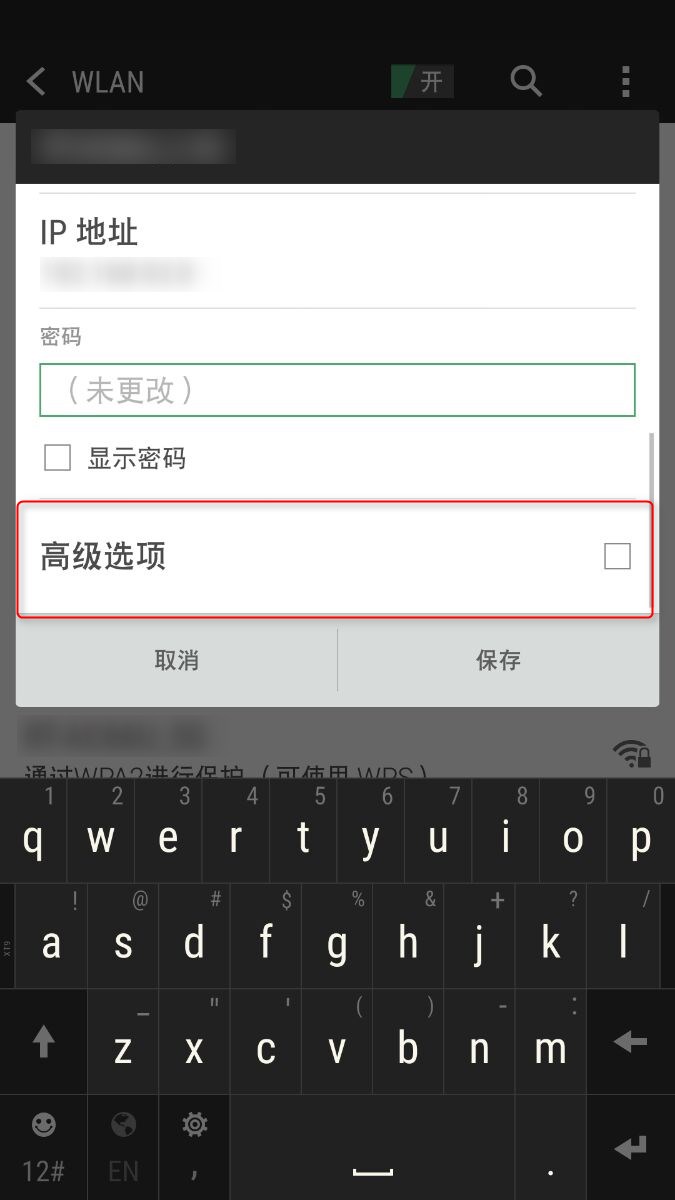 在修改网络界面中,找到并点击"显示高级选项"以查看更多网络设置。