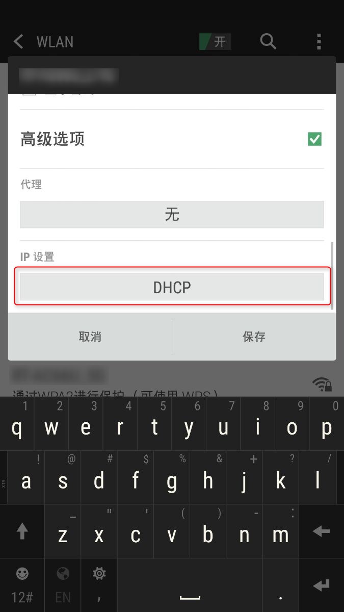 点击"IP设置"选项,在弹出的菜单中选择"静态"(默认为DHCP)。